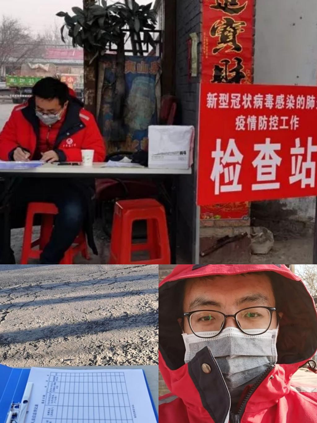 高原,曾是2013级电子信息与控制工程系轨道1303班的一名学生,现在在怀来县沙城镇人民政府工作。在1月26日接到上级通知后,他连夜返回工作岗位,按照城镇统一工作部署,到社区协助工作。从辖区内分包小区的入户排查登记汇总,到辖区日常的走访宣传,从管控小区出入口的人员(车辆)进出,到利用休息时间回镇里对接高速口、铁路人员的反馈信,高原一直坚守在自己的岗位上,守护着社区居民的平安。自27日至今,他一直战斗在战疫前线,贡献自己的一份力量。