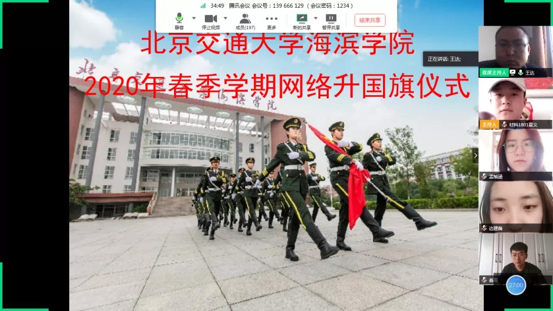 2020年4月13日7:00,365官网于腾讯会议顺利举行“抗击疫情众志成城,海滨青年力学笃行”网络升旗仪式。党委副书记魏炜、学生处全体教师、校级学生组织学生参加本次升旗仪式,本次仪式由学生处教师王达主持。