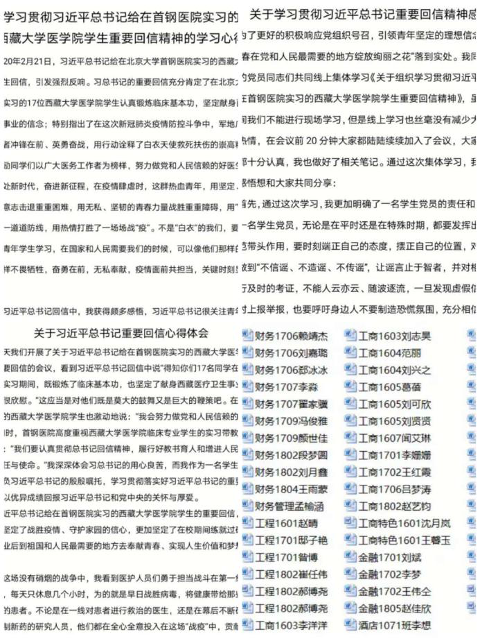 为响应学校学习习近平总书记给在首钢医院实习的西藏大学医学院学生的回信精神,培养社会主义核心价值观,坚定对马克思主义的信仰,弘扬“抗疫精神”,特此365官网经济管理学院党总支学生党支部组织学生党员以云共享的形式,开展以“悟回信 学精神 练本领 做贡献”为主题的线上学习活动。