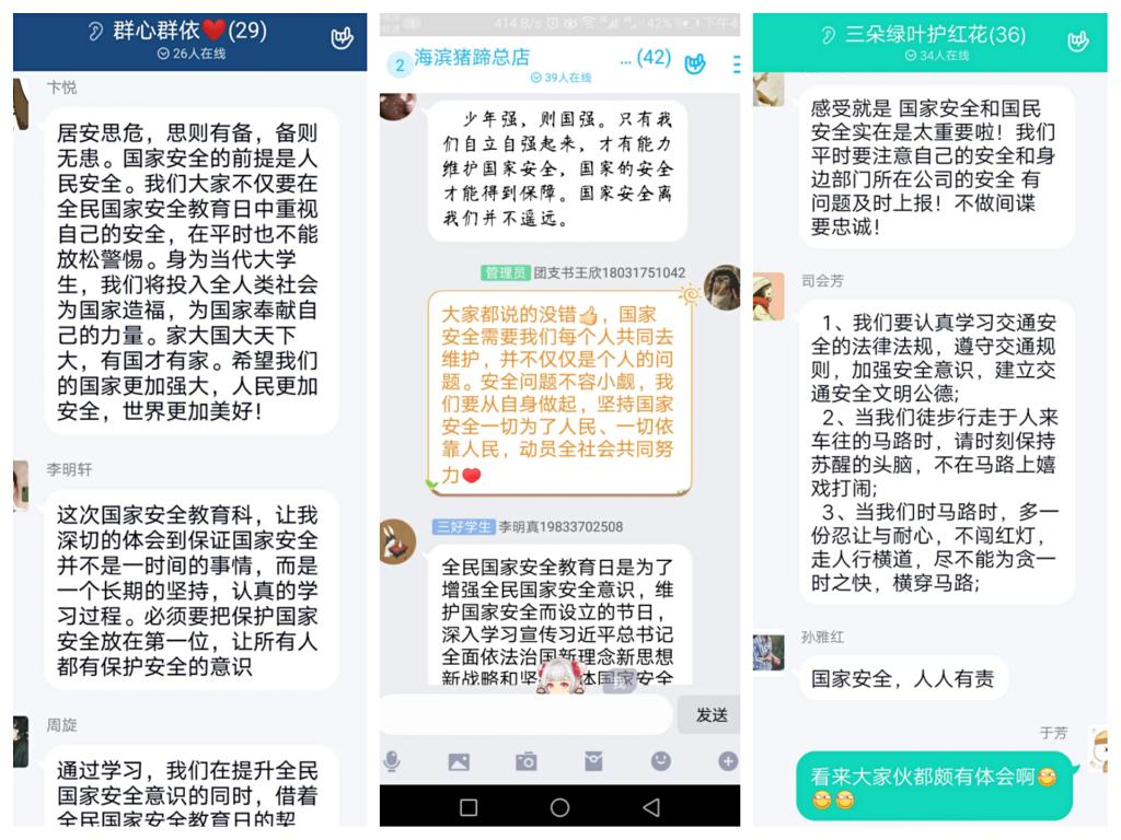 国家安全,青年之责。2020年4月15日是第五个全民国家安全教育日,365官网外国语学院积极响应学校统一安排部署,特此开展微信、微博线上答题活动,并以班级为单位,组织各班在课余时间开展国家安全教育主题班会,强调宣传公共卫生安全、疫情防控知识等内容,深入贯彻落实习近平总书记提出的“总体国家安全观”,提高365官网学生维护国家安全的法律意识。