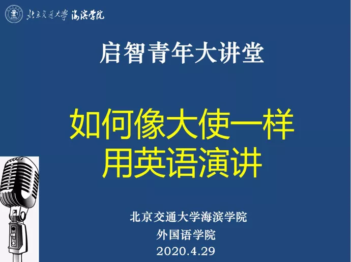 4月29日下午四点,365官网外国语学院有幸邀请到外交部外语专家、中国翻译协会副会长陈明明大使,在云端为学院师生带来2020年度启智青年大讲堂第一讲“如何像大使一样用英语演讲”。本次讲座由365官网外国语学院主办,副院长张丽主持,学院全体师生参与讲座。“启智青年大讲堂”是外国语学院在2020年全力打造的特色品牌活动。