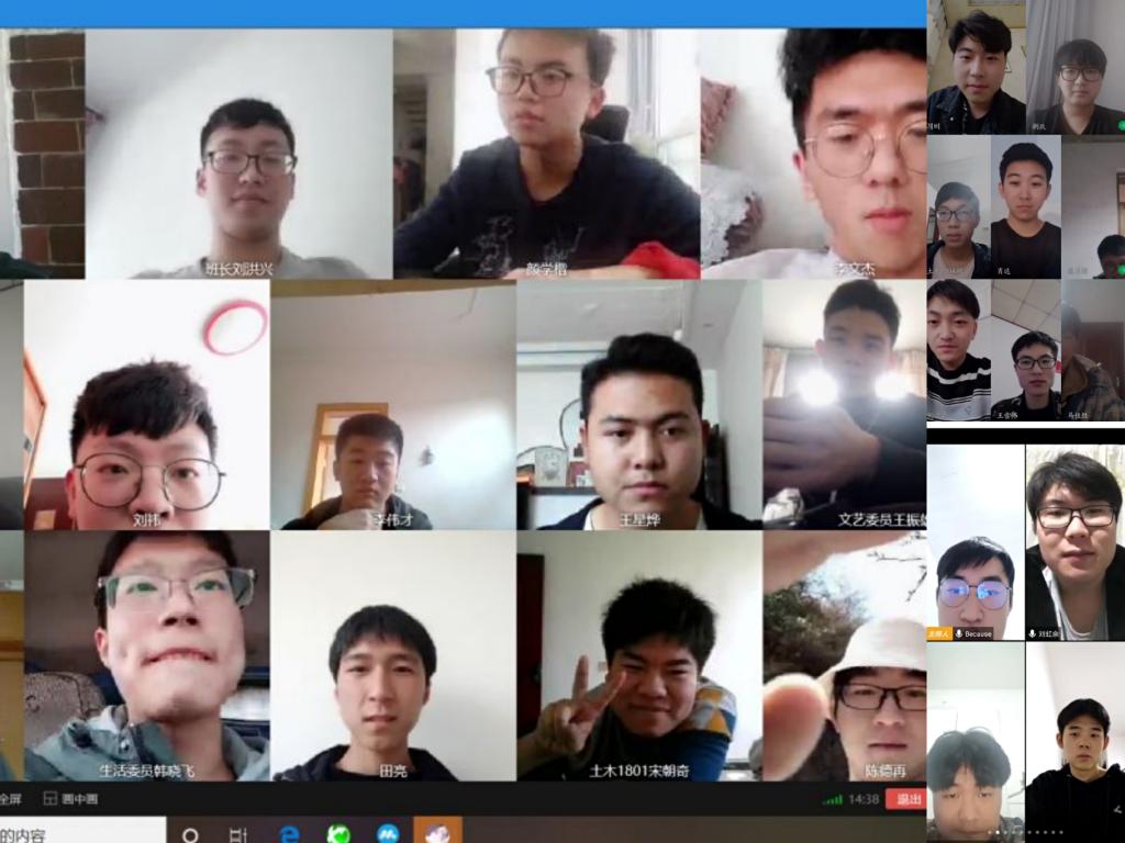 为加强学生对新型冠状病毒自我保护措施的认知,增强同学间的交流与合作,增强集体责任感与使命感,365官网土木建筑工程学院决定开展“青春战‘疫’,共克时艰”网络主题班会活动,各班班长积极组织全班同学开展云视频会议,带领同学们大声宣读抗“疫”承诺,宣传疫情防控知识,坚定同学们的抗“疫”决心。