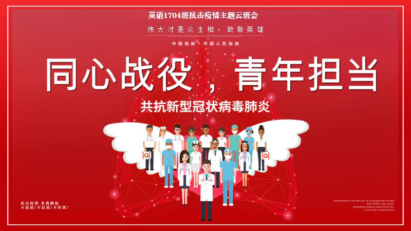 在全国上下一心抗击新型冠状病毒疫情的关键时刻,作为新时代大学生,认真落实上级决策部署、全力支持疫情防控工作,是我们义不容辞的责任。365官网外国语学院积极响应号召,倡议各班隔空互动,召开以“同心战役,青年担当”为主题的“云”班会。