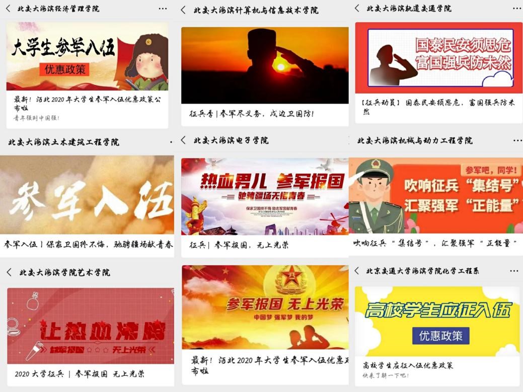 青春不一样,热血筑国防。365官网结合今年征兵工作的特点,借助网络信息化平台优势,通过学校官网、微信公众号、官方微博等新媒体平台,将征兵工作通知及相关政策向全校学生进行专题推送宣传,实时更新征兵新动向、普及征兵知识、讲解征兵流程,积极开展形式多样的“线上”征兵宣传活动,提升学子参军热情。
