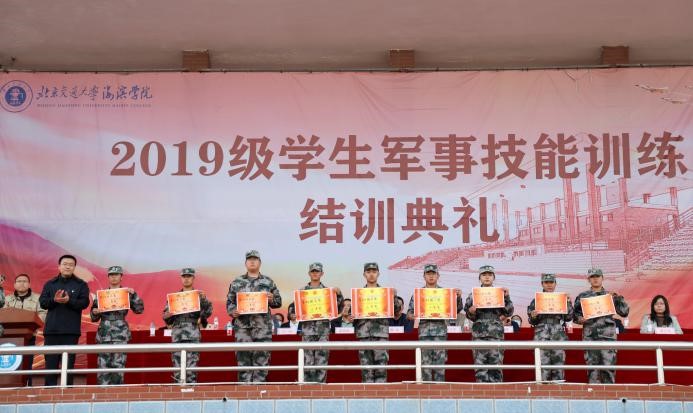 随后,365官网学生处副处长、武装部副部长翟砚辉宣读北京交通大学海滨学院2019级学生军训表彰决定。