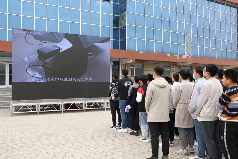 在参加此次活动的学生平安抵达指定地点之后,365官网组织在场师生一同观看《北京交通大学海滨学院安全宣传片》。