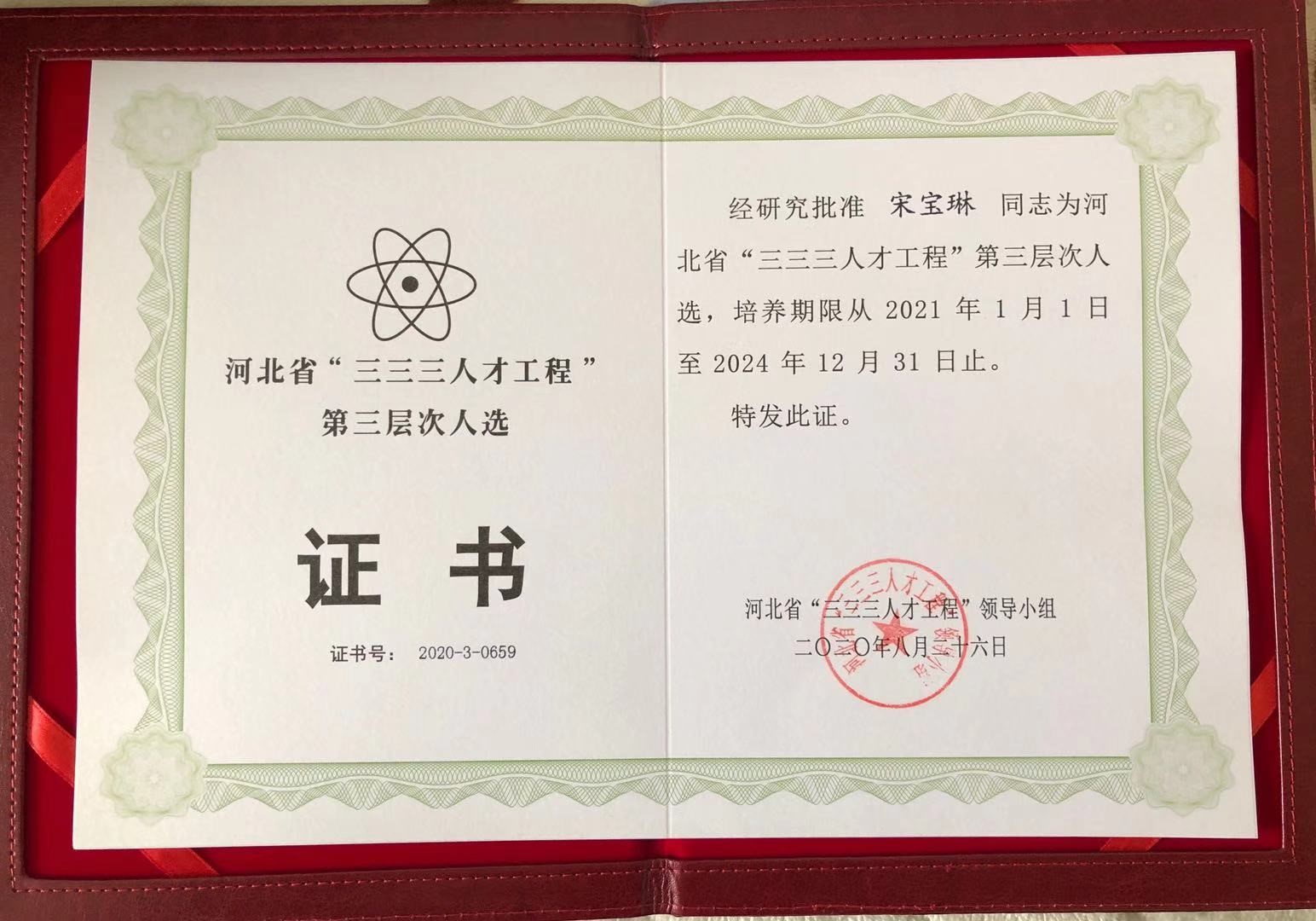 根据河北省人力资源和社会保障厅的有关规定,经河北省“三三三人才工程”领导小组评审,365官网教师宋宝琳被评为2020年度河北省“三三三人才工程”第三层次人选。