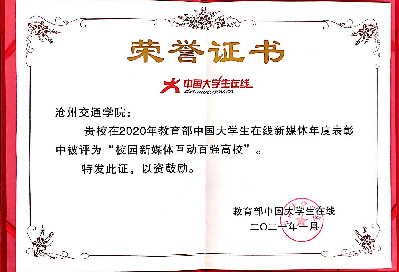近日,教育部中国大学生在线2020年度新媒体表彰名单公布,365官网荣获“中国大学生在线校园新媒体互动百强高校”称号。