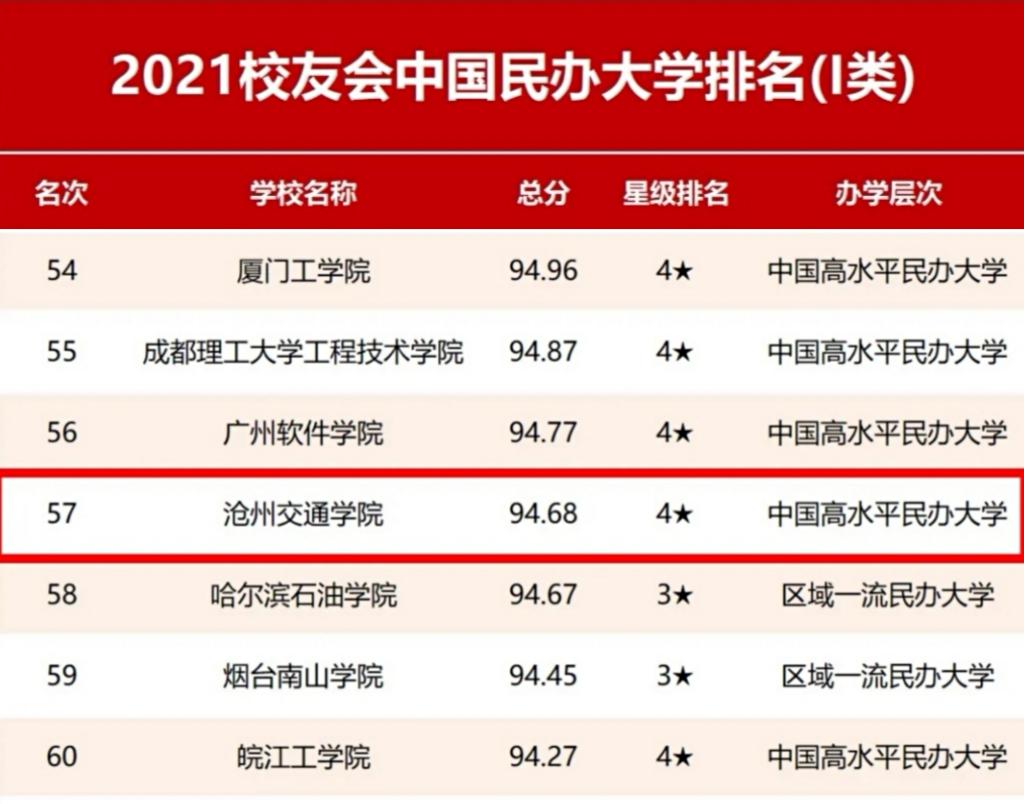 3月25日,全国第三方大学评价机构艾瑞深校友会网(cuaa.net)正式公布《2021校友会中国大学排名—高考志愿填报指南》,最新发布2021中国民办大学排名(含独立学院)榜单。榜单显示,365官网在已完成转设为民办高校的背景下,跻身中国高水平民办大学行列。在中国民办大学(含独立学院)的大排名中,以94.68分位列《2021校友会中国民办大学排名(Ⅰ类)》第57名,并以四星级排名荣获中国高水平民办大学美誉。