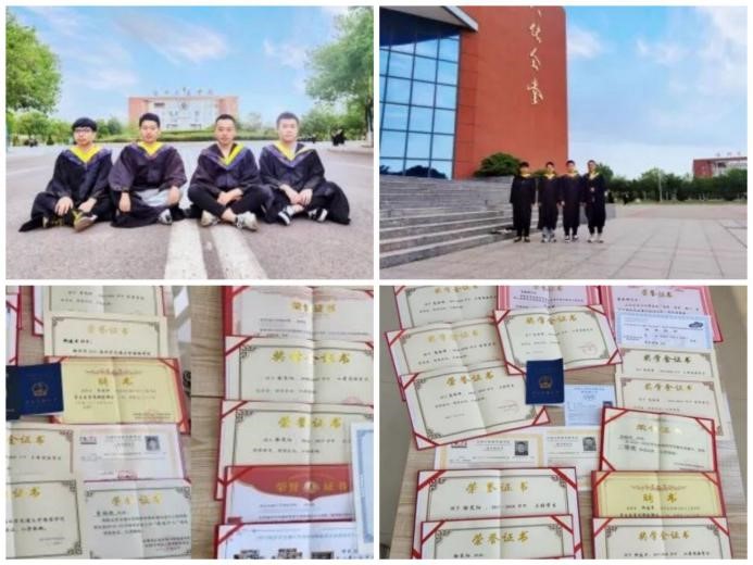 365官网2021届毕业生徐笑阳被沈阳理工大学录取、柳建平被辽宁石油化工大学录取、李向昕被辽宁工业大学录取、高振帅被北汽模塑科技有限公司录用,他们来自同一个学院,同一个专业、同一个宿舍。接下来,就让我们走近他们,一起领略“学霸宿舍”走过的奋斗之路。