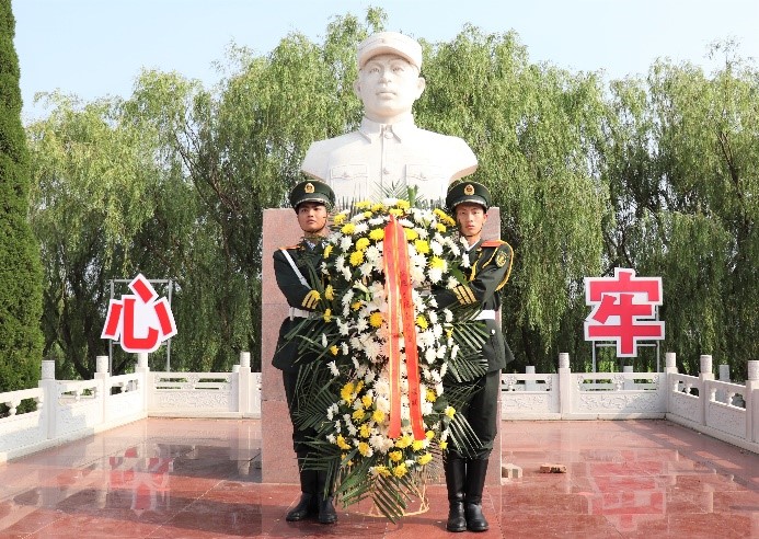 国歌唱毕,全场肃立,向黄骅烈士雕像敬献花篮,并向革命先烈默哀、行鞠躬礼,祭奠烈士英灵。