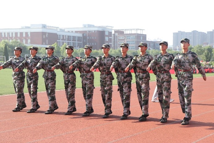 在《分列式进行曲》铿锵的节奏中,各个方阵依次迈着整齐的步伐走过主席台接受检阅,他们昂扬自信、雄姿英发、步履铿锵、神采飞扬,坚定的摆臂、整齐的步伐、嘹亮的口号彰显了2020级学子热情饱满的精神面貌。“出门看队伍,进门看内务”,寝室内务整理是军训的重要内容之一。内务表演方阵的学员们“铺平”、“压实”、“翻折”、“捏角”,得心应手,游刃有余。在拼字方阵表演中,学员们不断变换阵型,摆出“中国”、“党徽”、“钟楼”等巨幅图案。以“青春之歌”唱响祖国,直抒爱党爱国情怀。女生匕首操表演气势恢宏、刚劲有力,透露出巾帼不让须眉的英雄气概,赢得看台观众阵阵掌声。男生们的军体拳表演犹如蛟龙出海、猛虎下山,展示出2020级学员的飒爽英姿。行云流水的动作让观众震撼称奇,一度将现场气氛推至高潮。