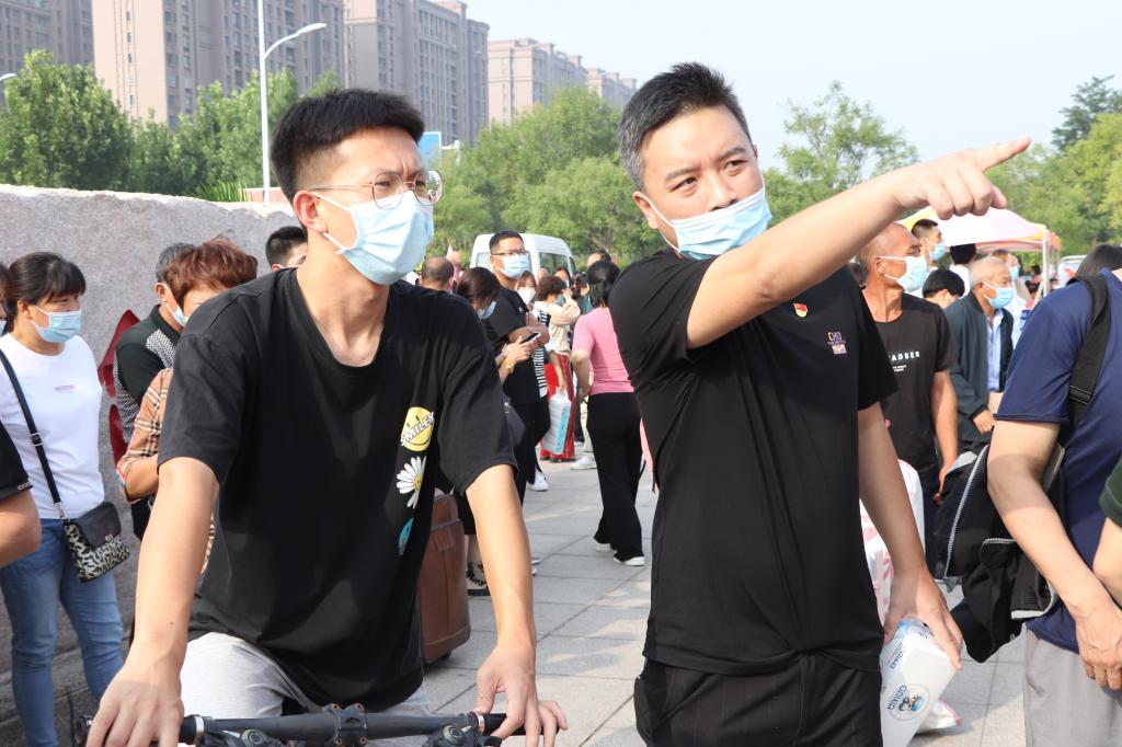 各位党员教师志愿者在学校门口扫码区,耐心给各位家长讲解新生入校事宜并组织家长进入休息区,以确保迎新工作的正常进行。