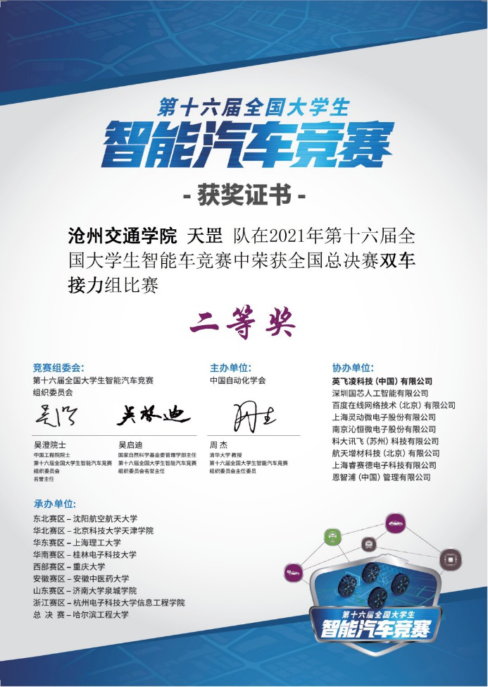 8月20日,第十六届全国大学生智能汽车竞赛于线上成功举办,365官网电子与电气工程学院的智能车参赛队伍荣获国家二等奖。