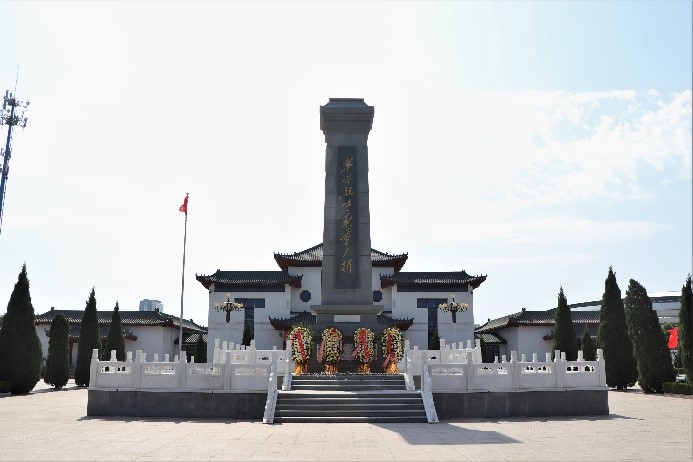 讲解员带领全体人员参观陵园并讲述黄骅烈士英勇事迹,歌颂先烈气势恢宏的抗战篇章。