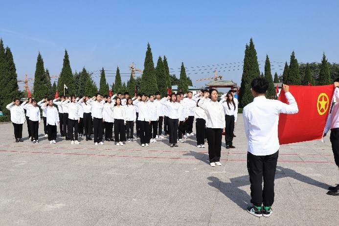 学生代表王玺宇带领全体成员重温入团誓词,向革命英勇献身的人民英雄黄骅致以深切缅怀和崇高敬意。