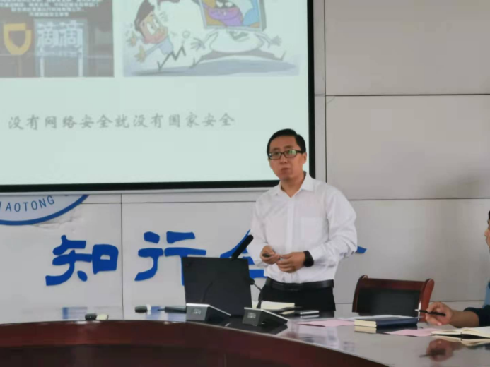 网络信息技术中心副主任贺秋雨结合国内外网络安全形势就网络安全政策、法律法规及相关案例进行有关知识介绍。