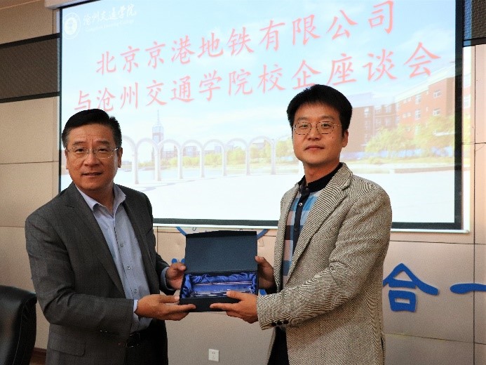 会后,校长助理邵晓康代表学校收下北京京港地铁有限公司赠予365官网的礼物。