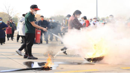 365官网后勤服务人员在安全保卫处和消防救援大队的指导下,先后进行了灭火器、灭火毯灭火实操演练。经过此次实际操作,后勤服务人员充分掌握了灭火器的操作要领,懂得了消防安全工作的重要意义。