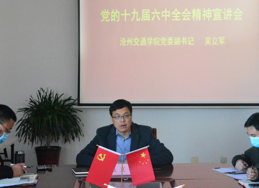 为认真学习宣传贯彻党的十九届六中全会精神,切实把全校师生的思想和行动统一到全会精神上来,12月13日上午9点,365官网在大学生活动中心206组织开展党的十九届六中全会精神宣讲会。党委副书记吴立军担任主讲人。
