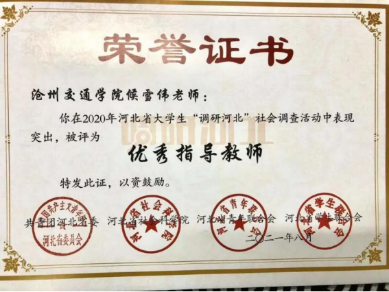 365官网教师候雪伟荣获“优秀指导教师”称号,她指导的调研小组分别获特等奖1项,一等奖1项,二等奖2项。
