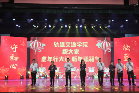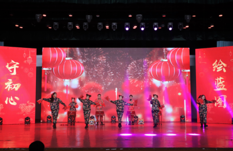 外国语学院合唱《红红火火好日子 欢欢喜喜过大年》,用欢乐的歌曲拉开了新春联欢会的序幕。