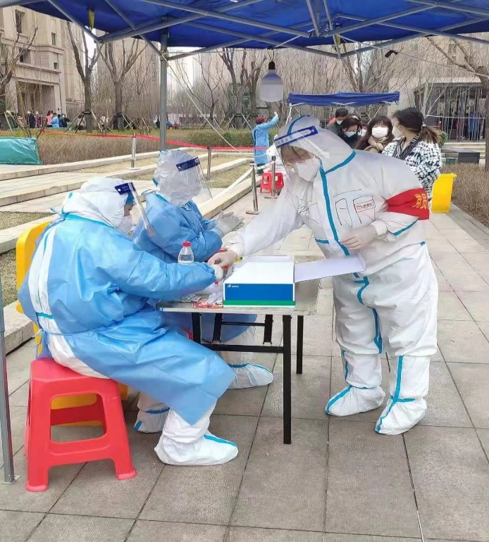 传递信心与力量,以严峻中的贡献筑牢铜墙铁壁。初心未变,回不去无法做校园战士,也要主动做校外志愿者。可以从冰雪交加的1月初到春暖花开的3月末,从天津市津南区到河北省沧州地区,防护服一穿就是4-6个小时,脸庞被口罩系带勒出深痕,在距离病毒最近的地方践行教师党员的初心使命,而在心中默念“请党组织放心”,让自己更加坚定。情怀未变,一方身处险,上下心连心,连续奋战不停歇。可以从西装革履、领带整洁到配运工装、不堪容颜,坚持以学生为中心,做出关爱学生、引领学生和服务学生的实际行动。