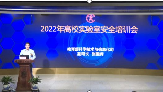 会上,教育部科学技术与信息化司副司长张国辉对实验室安全培训会召开的背景、意义及重要性等几个方面进行了详细地说明;清华大学实验室管理处副处长艾德生对高等学校实验室实验室安全检查项目表(2022年)的条目进行了非常详尽的解读;苏州大学实验室与设备管理处处长魏永前以苏州大学实验室安全管理为例,对实验室安全实验室安全管理体系的构建与实施进行了详细地阐述;中国矿业大学安全科学与应急管理研究院院长李爽从双重预防机制的提出与建设要求、双重预防机制的构成与核心逻辑、实验室安全双重预防机制框架与流程、实验室安全双重预防机制建设展望等四方面讲述了双重预防机制实验室安全管理中的应用。