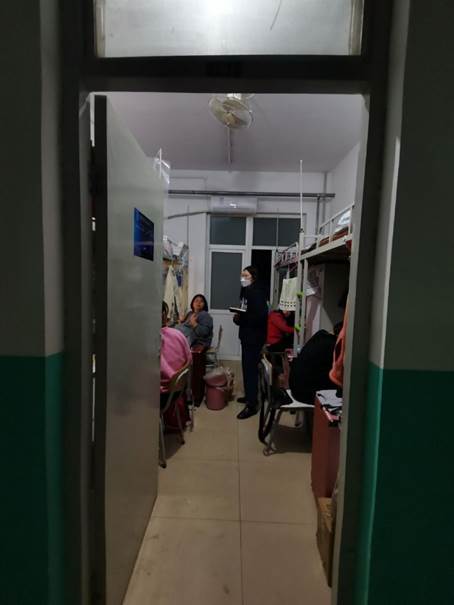 在配合学校疫情防控的同时,赵美艳不断走访学生宿舍,了解学生相关情况,安抚学生情绪。她将日常走进学生宿舍与晚上花式查寝相结合。晚上查寝采取各班班长和团支书走访自己班级宿舍、以宿舍为单位按照规定姿势拍照打卡、随机开视频以及班级魔方等相结合的打卡方式,确保学生及时归宿,杜绝私自出校等违纪行为,给同学们增添了生活乐趣的同时,缓解了封校和学习带来的压力。