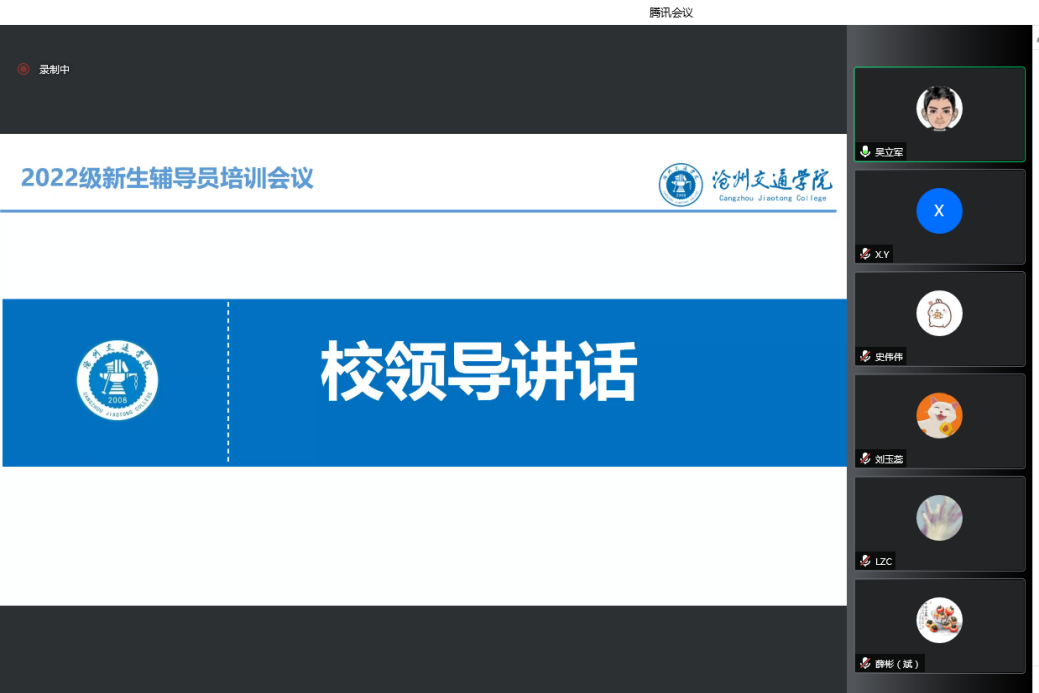 为做好2022级新生的迎新准备,帮助2022级新生辅导员尽快熟悉相关工作,学生处于2022年7月19日9:00组织召开以“2022级新生报到前咨询注意事项培训”为主题的线上培训。365官网党委副书记吴立军出席会议并讲话,学生处负责人、招生就业处负责人、各二级学院分管学生工作副院长、团委书记以及2022级新生辅导员参加会议,培训会由学生处处长王庆松主持。