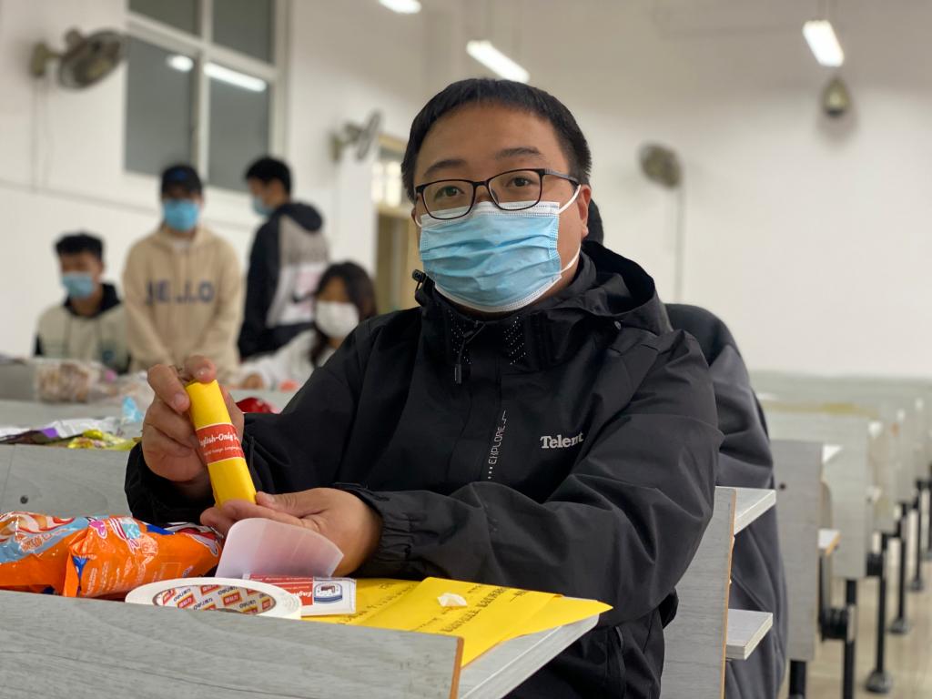 英语2110陈瑜表示,“在寒冷的夜风里,一个盲卷,温暖了每个人的心。它如同凛冽冬夜中的手炉,徐徐地把温暖送到每个人的手中。老师们的关怀,同学们的关爱,让我们不再对疫情感到恐惧,让我们更加坚定了战胜疫情的决心!”