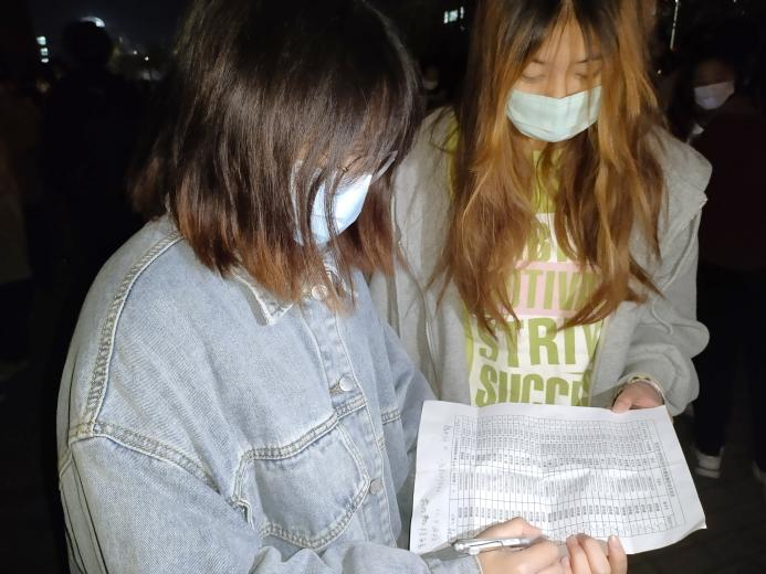 身披星辰,戎装以待。负责核酸检测的教职工和医生们在检测点用忙碌的身影迎接太阳的升起,他们一遍遍检查用品是否数量齐全,一次次确认人员是否准备就绪,与太阳一同升起的,还有他们打赢这场检测之战的信心。在现场,他们维持秩序,组织核酸人员佩戴口罩一米间隔有序排队,扫码录入信息,核对人员信息表。“每个人都很辛苦,希望我们能一起努力,早日度过疫情。”医护人员说出这句话时,我们能清楚地透过防护面罩看到他眼里泛着的光。无私奉献,默默守护,他们用汗水浇筑校园安全防线。
