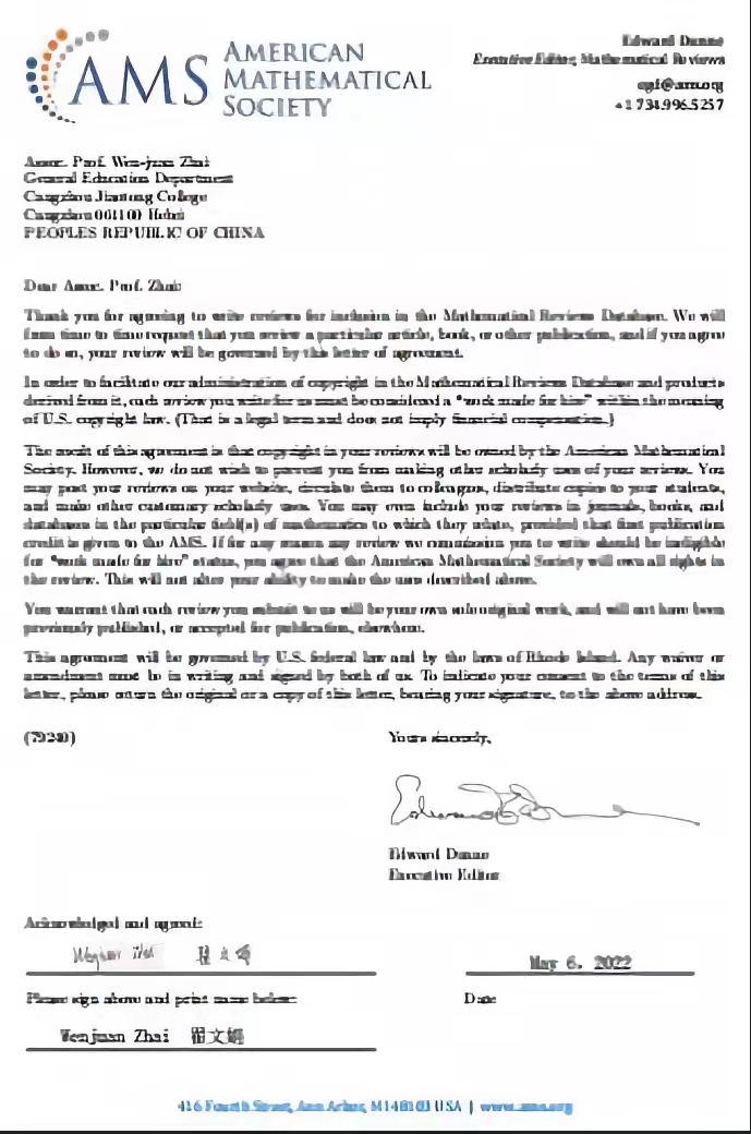 翟文娟老师是365官网首个成为美国《数学评论》评论员的教师,主要从事计算数学、统计优化等方面的研究工作,已发表SCI收录及核心学术论文10余篇,论文发表在Applied Mathematical Modeling、Calcolo、Journal of Applied Statistics、Advances in Difference Equations、Journal of Inequalities and Applications、AStA Advances in Statistical Analysis、Journal of Applied Mathematics and Computing等国际重要SCI期刊及《计算数学》、《数学进展》、《高校计算数学学报》等国内核心期刊。主持并完成河北省教育厅高等学校科学研究项目2项,校级重点项目2项。
