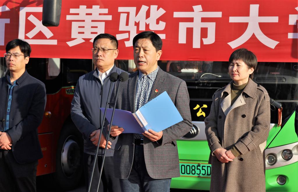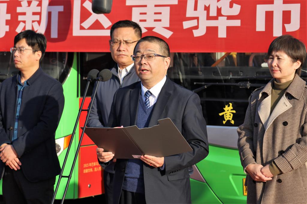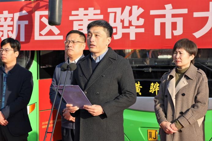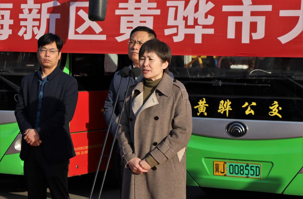 沧州渤海新区黄骅市副市长张桂云宣布沧州渤海新区黄骅市大学校园公交专线开通。