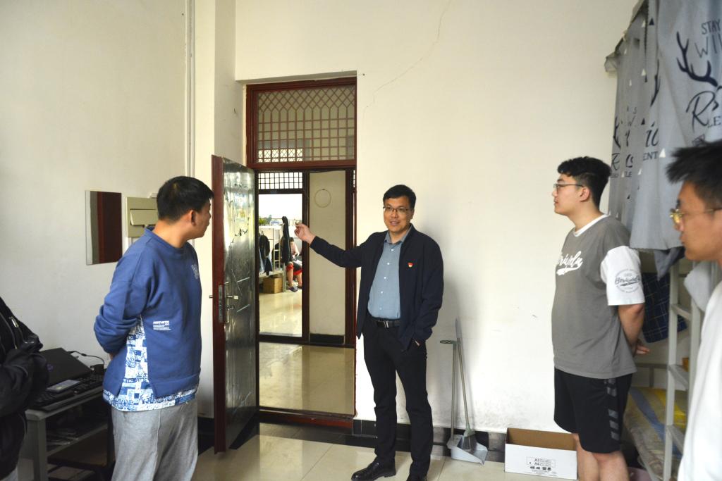 为加强同学们对宿舍环境的重视,引导同学们养成良好的卫生习惯,营造一个干净整洁的学习生活环境,4月19日早8:30,党委副书记吴立军带队组织开展本学期第二次学生公寓安全卫生大检查活动。学生处处长王庆松及学生处全体成员,各学院党政副院长、团委书记及全体辅导员,校学生自律委员会主要成员参加了本次检查。