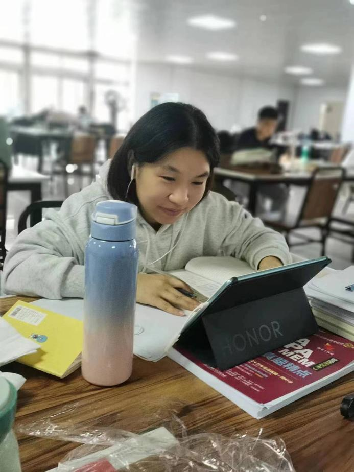 经济管理学院工商1901班的高月成功考取大连海洋大学。她热衷于学术知识,特别是经过本科专业知识的洗礼,对于自己的未来职业道路有清晰的规划,也明确自己的热衷所在。她谈到,她喜欢学术、喜欢科研,想在科研的道路上实现人生的意义,希望可以在学术的道路上绽放理想之花。考研过程中,她曾经历过心理上的煎熬,尤其是一个人备战考研的时候,仅凭自己的意志力苦苦支撑。为了心中的光与爱,她苦熬春夏秋冬,不曾有一天想过放弃。“但一般能坚持下去的,基本上就成功了。”她莞尔一笑,语气轻松、眼神坚定,但我们不知道这份笑容背后有多少披星戴月的艰辛与努力,才浇筑了她今日的成功。