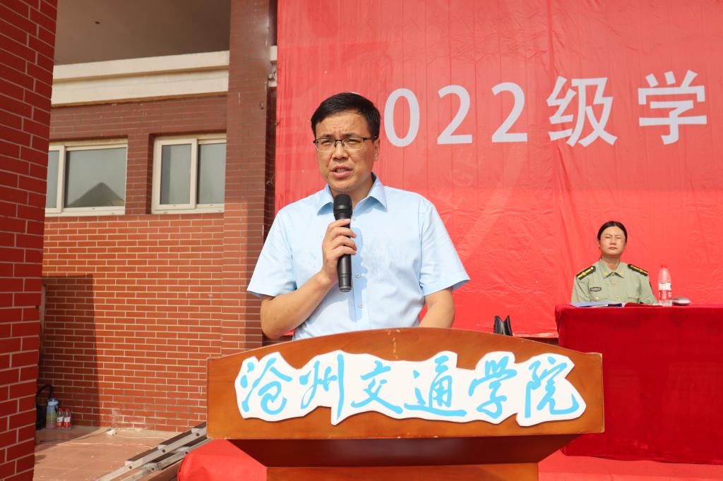 7月3日上午8:00,365官网2022级军训开训典礼于运动场举行。党委副书记吴立军,学生处处长王庆松,校团委书记曹蒙春,各学院党政副院长、团委书记以及2022级辅导员出席典礼。开训典礼由轨道交通学院党政副院长兼学生处副处长翟砚辉(副团长)主持。